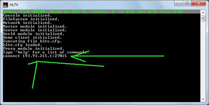 3. В данном окне пишем connect IP:PORT (IP:PORT того сервера к которому хотим подключить HLTV и записать демку)